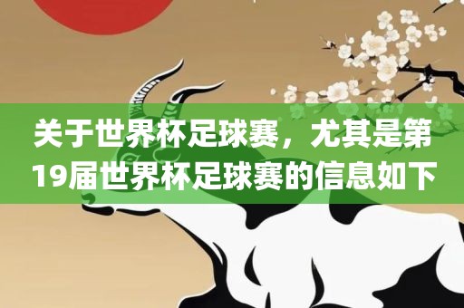 关于世界杯足球赛,尤其是第19届世界杯足球赛的信息如下