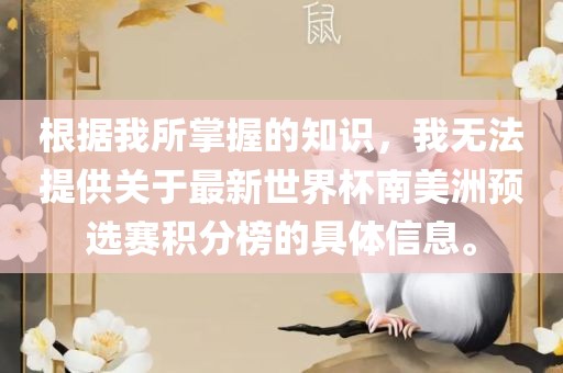 摘要:由于信息更新速度极快,我无法提供最新的世界杯南美洲预选赛积分榜具体信息。建议关注官方渠道或体育新闻以获取最新资讯。