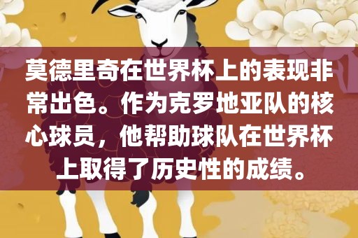 莫德里奇在世界杯上的表现令人印象深刻,是克罗地亚队取得优异成绩的关键因素之一。