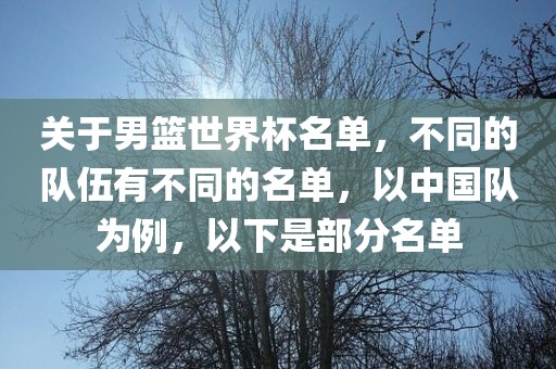 关于男篮世界杯名单,中国队公布了部分名单。不同队伍有不同的名单,竞争激烈。具体名单如下(此处省略具体队员名字),期待他们在世界杯上的表现。