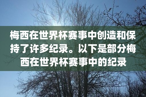 信息仅供参考,如需了解更多梅西世界杯纪录的信息,可以关注各大体育新闻网站获取最新资讯。