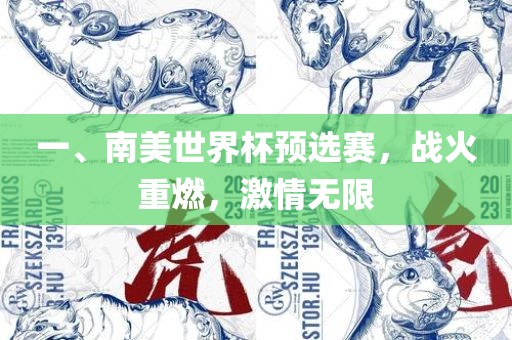 南美足球一直以来都是世界足坛的重要组成部分,南美世界杯预选赛是南美洲足球协会组织的赛事,旨在选拔参加世界杯的球队,赛事竞争激烈,各大球队为了争夺有限的晋级名额,必须全力以赴。