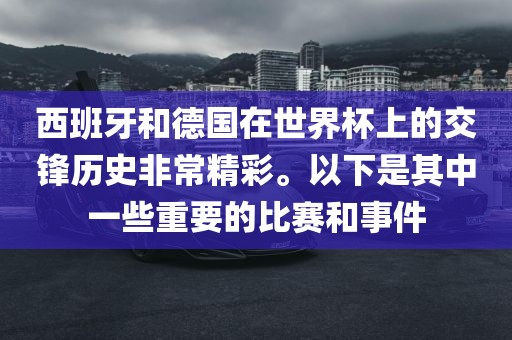 西班牙和德国在世界杯上的交锋历史非常精彩。以下是其中一些重要的比赛和事件