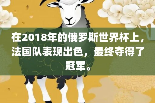 在2018年的俄罗斯世界杯上,法国队表现出色,最终夺得了冠军。