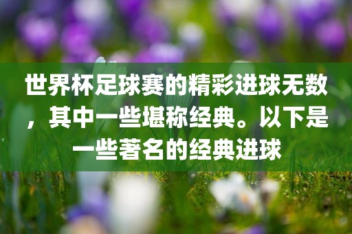 转载请注明来自江门市永晋源无纺布有限公司,本文标题:《世界杯足球赛的精彩进球无数,其中一些堪称经典。以下是一些著名的经典进球》