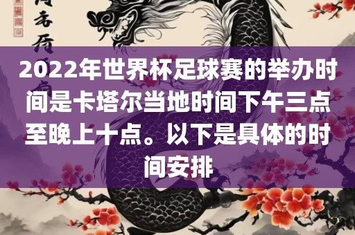 2022年世界杯足球赛的举办时间是卡塔尔当地时间下午三点至晚上十点。以下是具体的时间安排