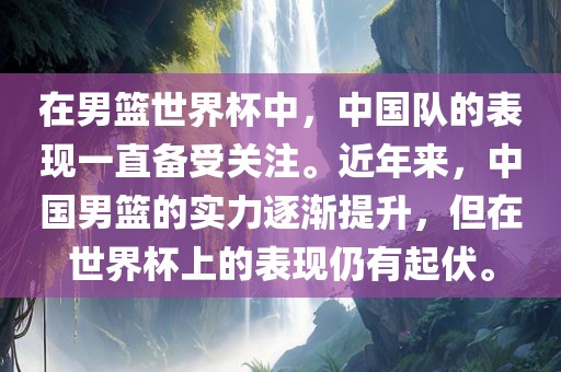 在男篮世界杯中,中国队的表现一直备受关注。近年来,中国男篮的实力逐渐提升,但在世界杯上的表现仍有起伏。