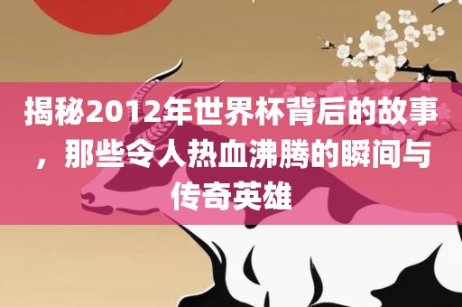 摘要:本文将带你走进2012年世界杯背后的故事,揭示那些令人热血沸腾的赛场瞬间和传奇英雄。从激动人心的比赛到球员们的精彩表现,背后蕴含着无数感人肺腑的故事和令人难以忘怀的时刻。让我们一起领略这场足球盛宴的激情与荣耀。