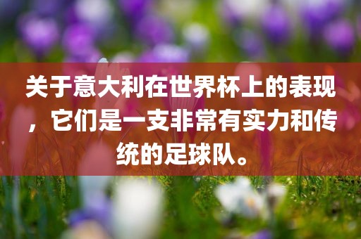 关于意大利在世界杯上的表现,它们是一支非常有实力和传统的足球队。