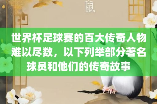 由于传奇人物众多,此处只列举了部分球员,如需了解更多信息,建议查阅世界杯相关文献资料。