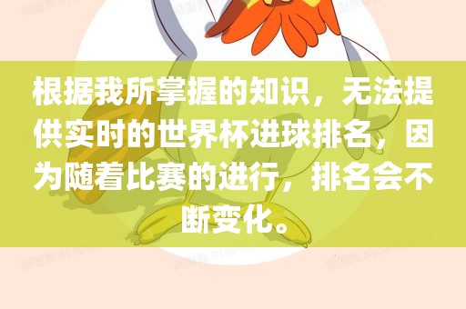 根据我所掌握的知识,无法提供实时的世界杯进球排名,因为随着比赛的进行,排名会不断变化。