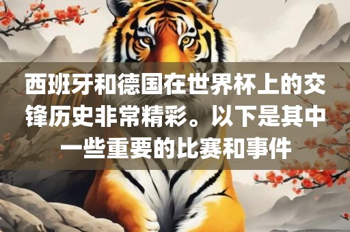 西班牙和德国在世界杯赛场上的交锋历史充满了激情与精彩,吸引了全球球迷的关注,如果您对西班牙和德国的世界杯交锋历史感兴趣,可以关注相关的比赛录像和报道,了解更多精彩瞬间。