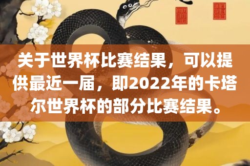关于世界杯比赛结果,可以提供最近一届,即2022年的卡塔尔世界杯的部分比赛结果。