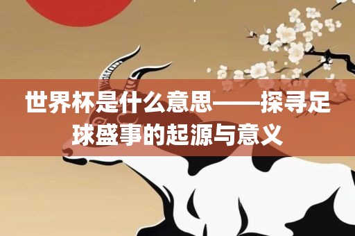 世界杯,一个让全球亿万球迷为之疯狂的赛事,每当提及这一关键词,人们的脑海中都会涌现出激情、荣耀与梦想,世界杯到底是什么意思呢?本文将为你深入解析世界杯的起源、发展以及它所承载的意义。