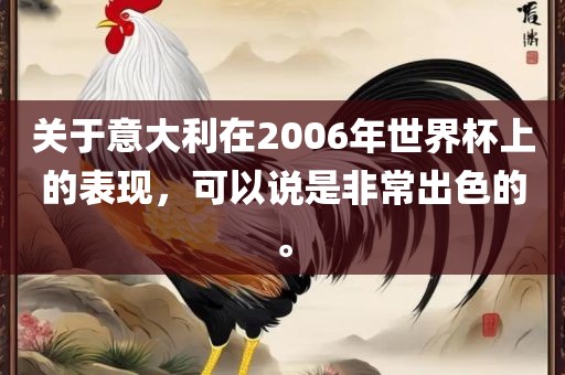 意大利在2006年世界杯上表现出色,凭借强大的实力和出色的表现,赢得了该届比赛的冠军。球队在比赛中展现出了出色的团队协作和精湛的技艺,赢得了球迷和足球界的广泛赞誉。可以说,这是意大利足球的一次巅峰时刻。