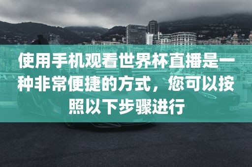 使用手机观看世界杯直播是一种非常便捷的方式,您可以按照以下步骤进行