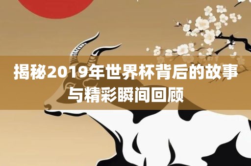 随着足球热潮的涌动,每一届世界杯都是球迷们翘首以盼的盛事,作为自媒体作者,我有幸带您回顾并深入了解2019年世界杯背后的故事和精彩瞬间,从赛事筹备、球队对决到球员风采,让我们一同走进这场足球盛宴的世界。
